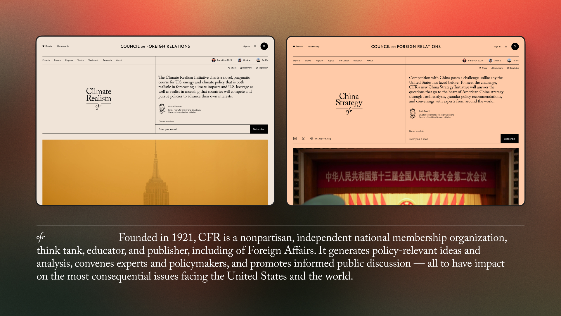CFR is an independent, nonpartisan membership organization, think tank, and publisher dedicated to improving understanding of U.S. foreign policy and international affairs for policymakers, academics, and journalists. They wanted to modernize their website to better serve their 5,000 prestigious members and the public. Specifically, they told us, “We are high-brow and fabulous and we should look like it.”