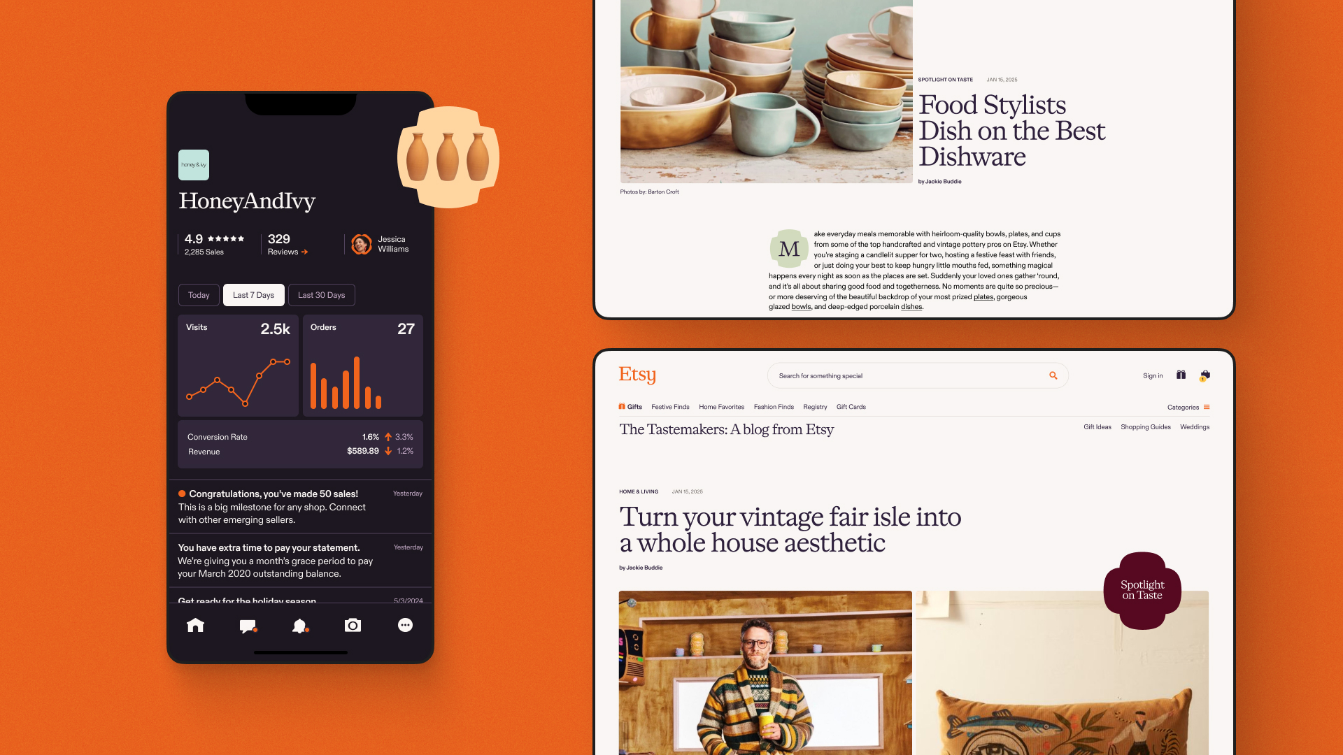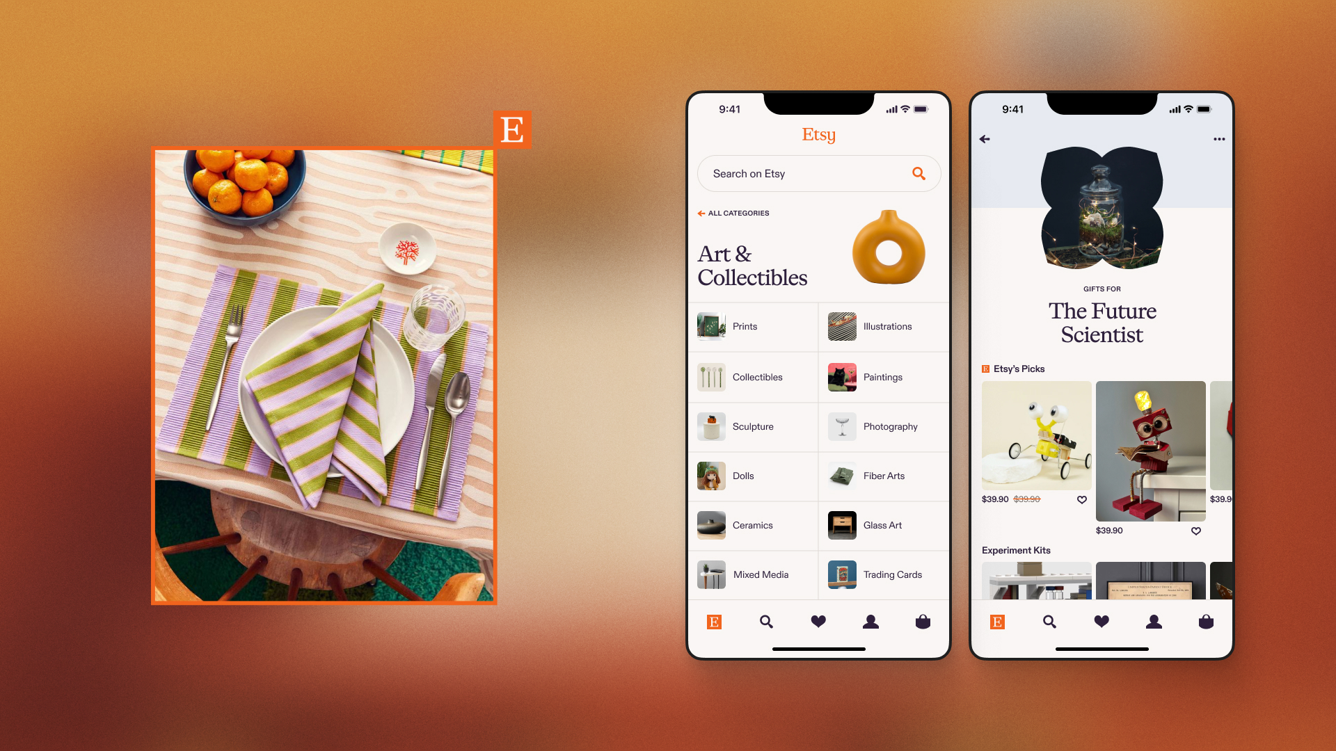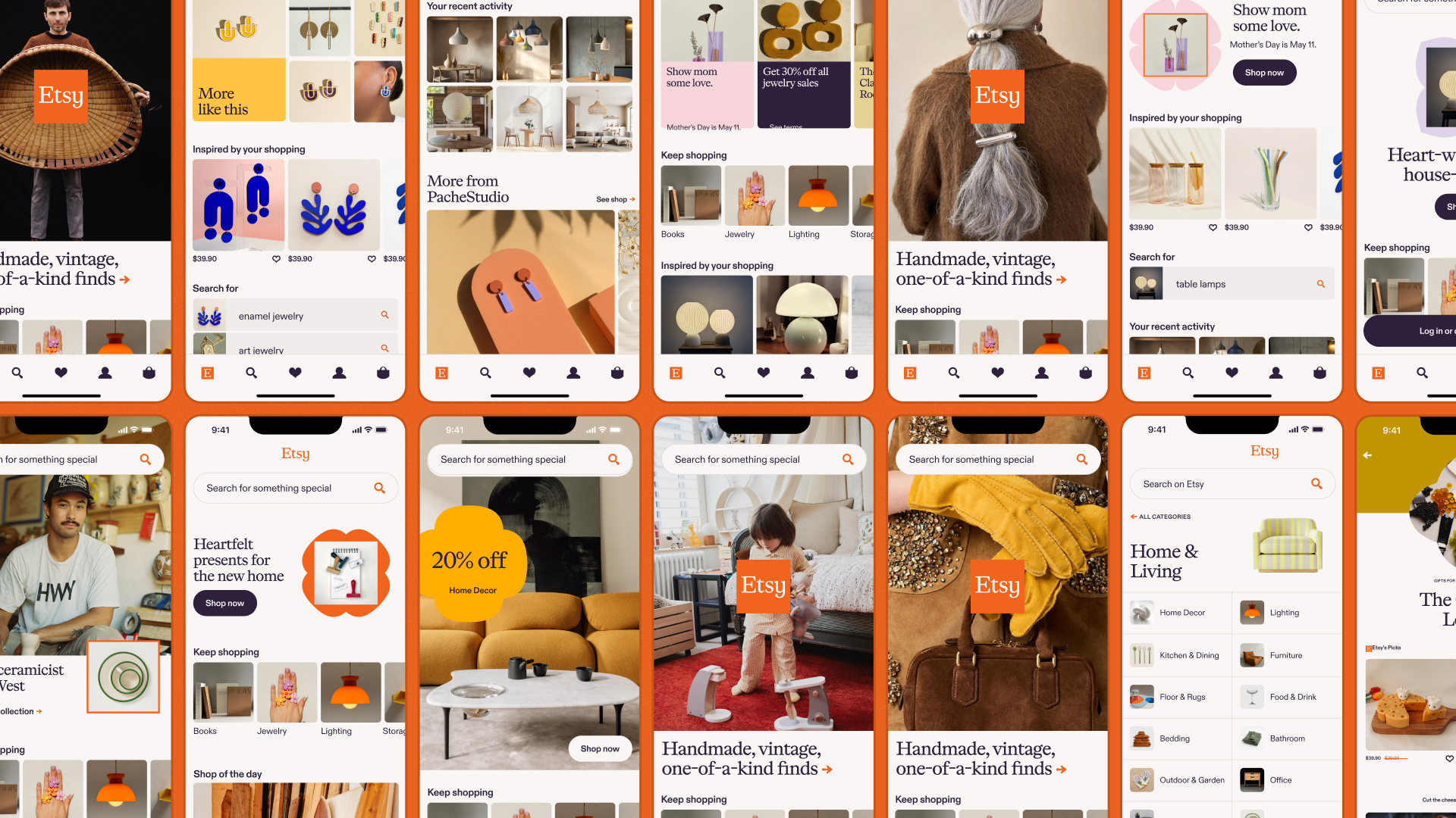 Etsy was eager to evolve beyond its niche reputation and become a go-to destination for the everyday shopper. To shift that perception, Etsy partnered with SYLVAIN’s team of strategists and designers to refresh their brand — and translate it seamlessly across their most visible platforms: etsy.com, their buyer app, and their seller app.