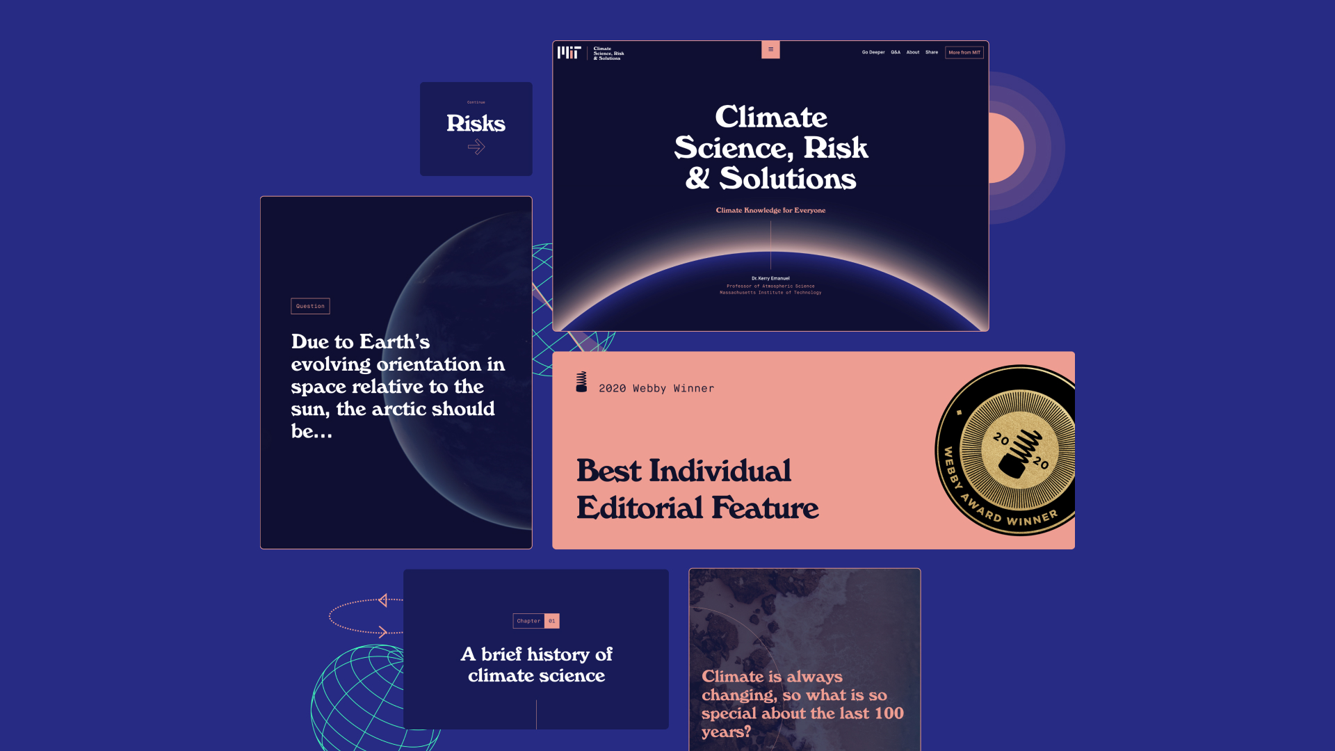 This project helped establish MIT as a subject matter expert on climate change. The site demonstrated MIT’s expertise in online education, set a new bar for digital storytelling at MIT, and won a Webby Award for Best Individual Editorial Feature.